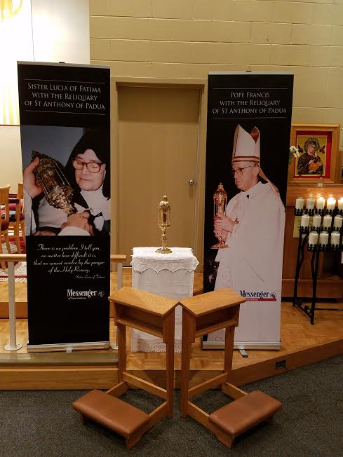 Floating Rib Reliquary With Pope Francis And Suor Lucia Of Fatima Banners