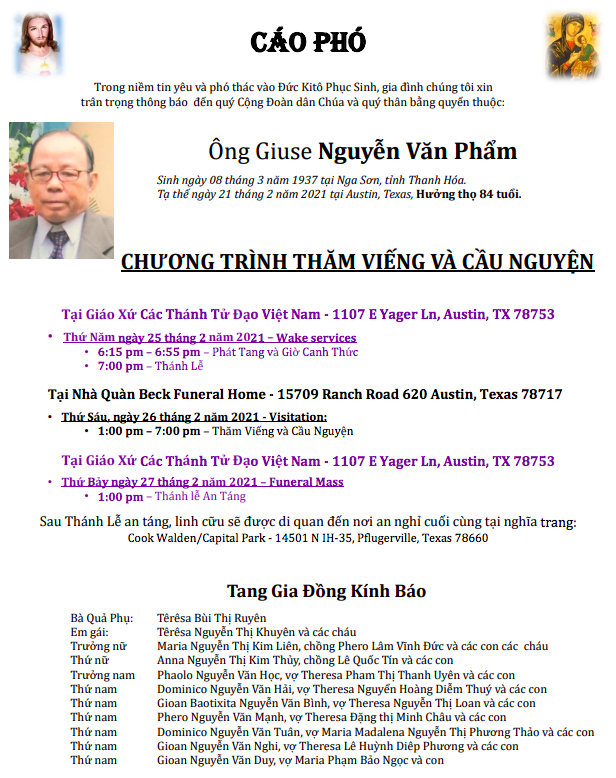 Cáo Phó – Xin Cầu Nguyện Cho Linh Hồn