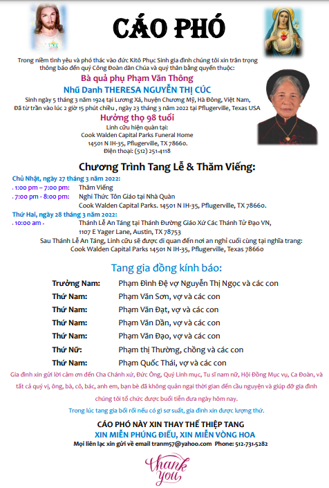 Cáo Phó – Xin Cầu Nguyện Cho Linh Hồn